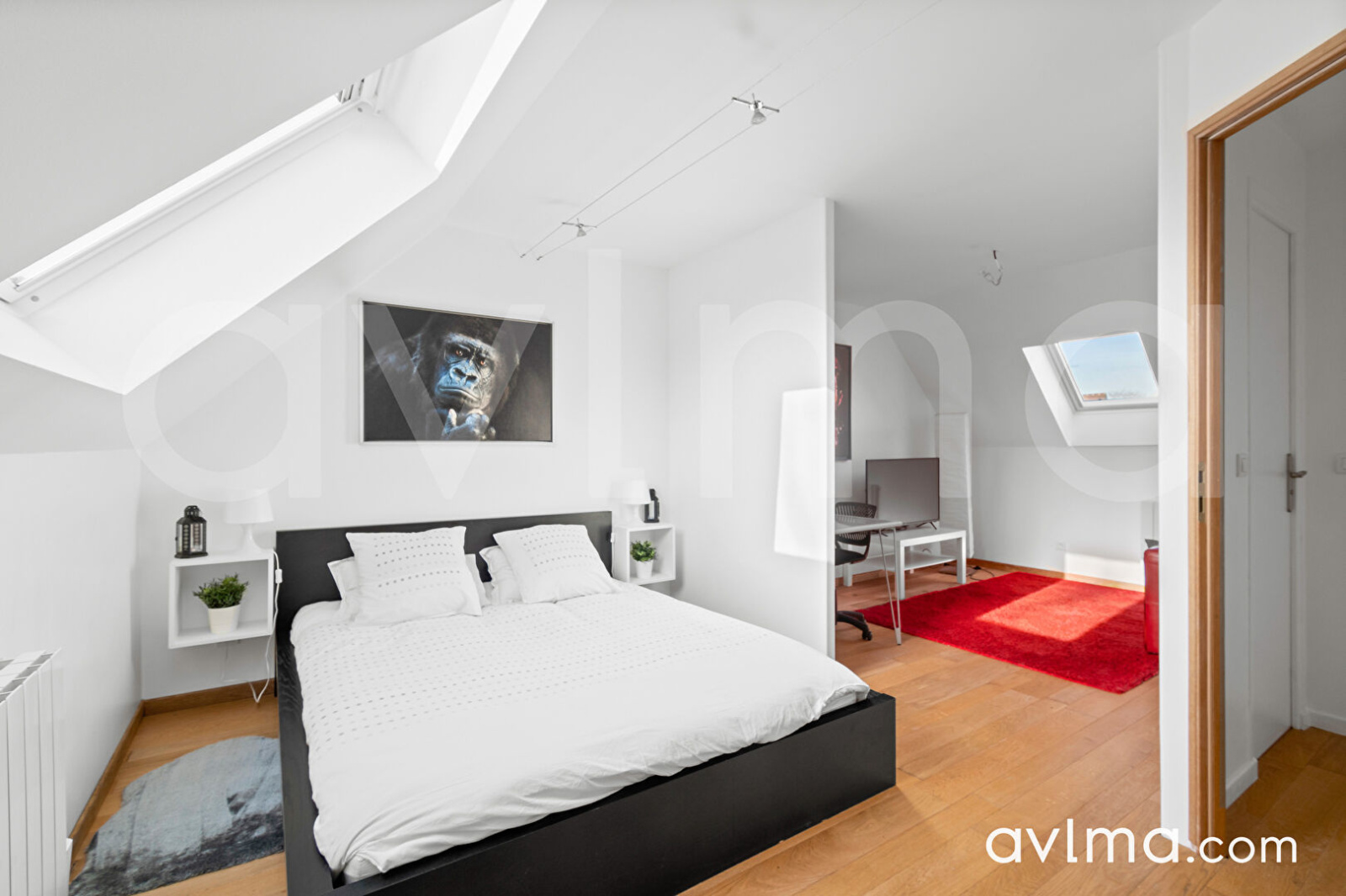 À l’étage, une belle mezzanine aménagée en espace bureau surplombe le séjour. Vous y trouverez une suite parentale avec salle de bains et douche, deux autres chambres (dont une facilement divisible pour créer une sixième chambre), une seconde salle d’eau ainsi que des toilettes indépendantes.